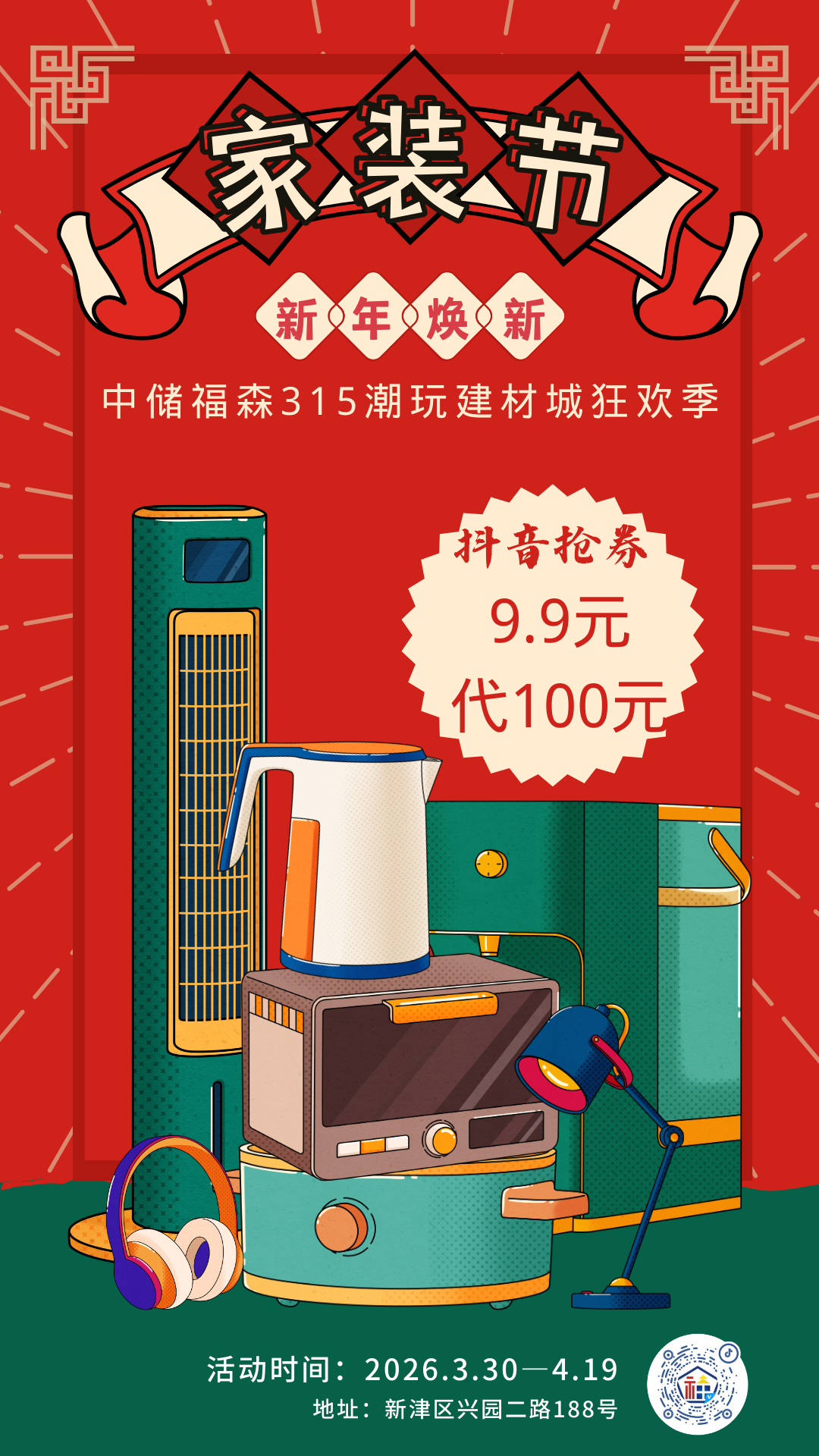 为响应消费升级需求,中储福森集团于2026年3月9日至4月18日重磅推出“潮玩焕新家·诚信嗨翻天——中储福森315潮玩建材城狂欢季”活动,以百万级补贴、多重福利组合及特色文化活动,打造2026年家装市场性价比标杆。